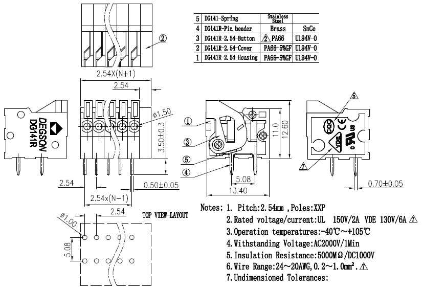 | Напруга пробою діелектрика | 2 000 | Vac | @1min |