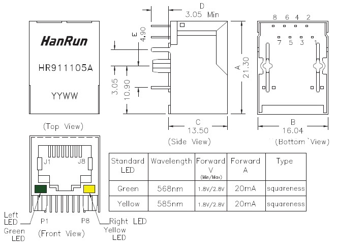 | > | Turns Ratios: TX = 1CT:1 RX = 1CT:1 | ||