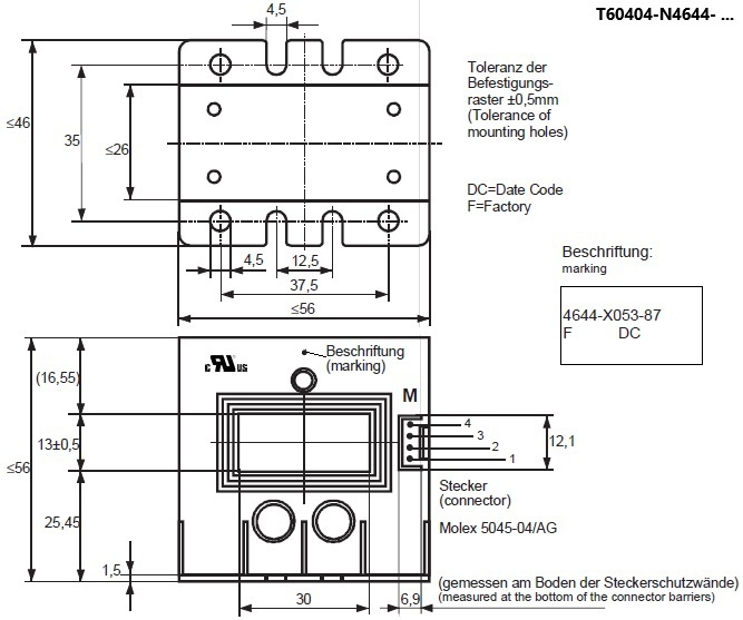 Функціональне призначення контактів | 1=+Ub 2=+Ub 3=Ia 4=M | ||