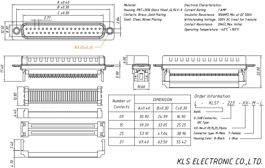 | матеріал контакту | Copper Alloy +Plated Au Sn Ni | ||