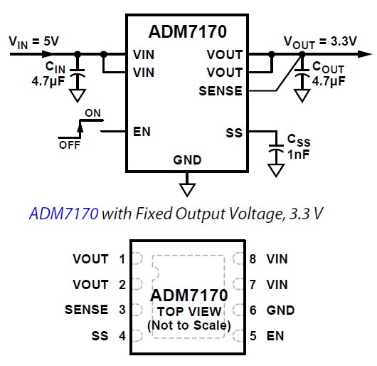 | Функціональне призначення | 500 mA, Ultralow Noise, High PSRR, | ||