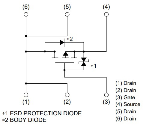 | Функціональне призначення контактів | 1/2/5/6=D 3=G 4=S | ||